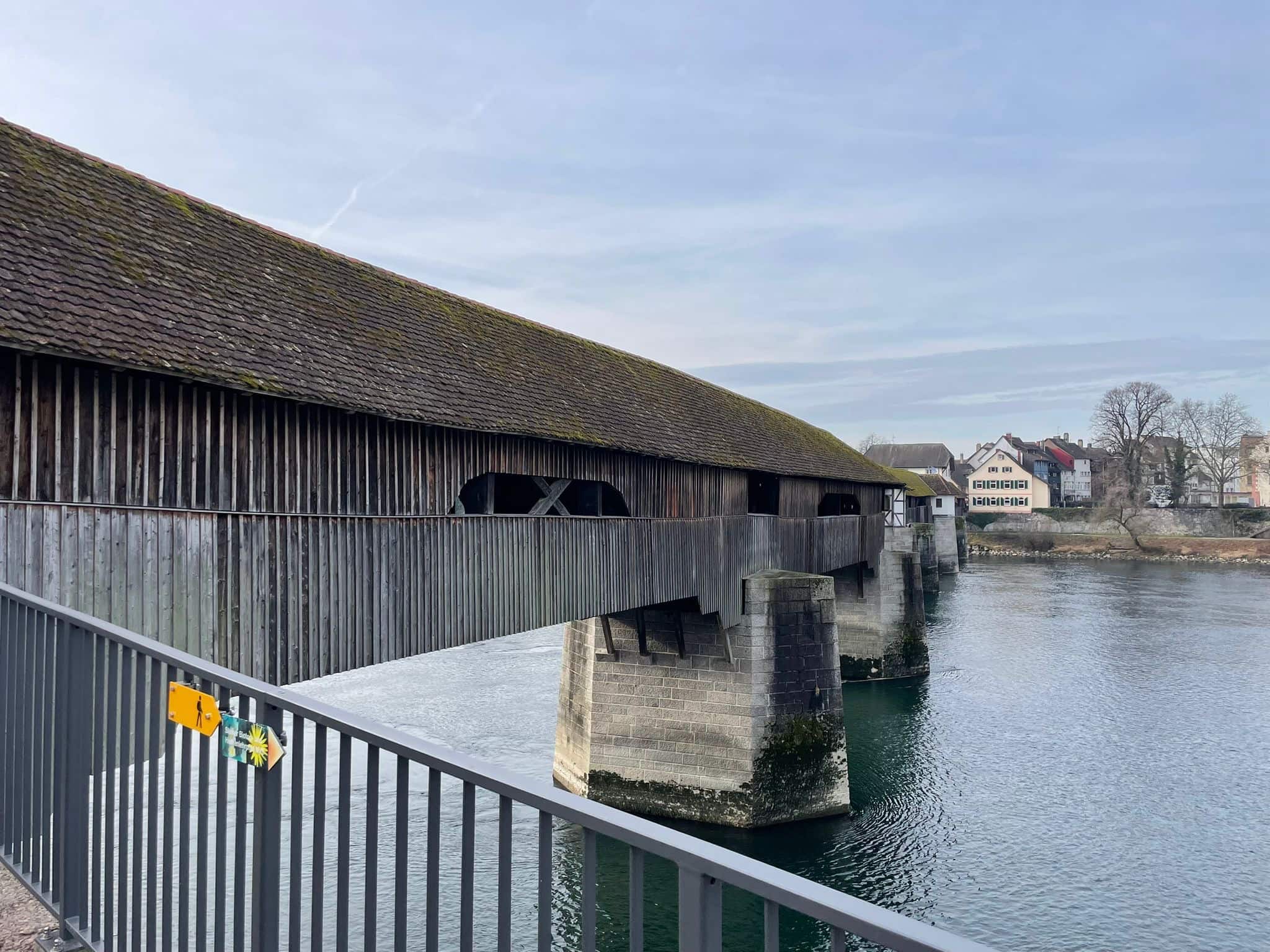 Die ca. 200 m lange, historische Holzbrücke führt über den Hochrhein und verbindet die Stadt Bad Säckingen mit der schweizer Gemeinde Stein.