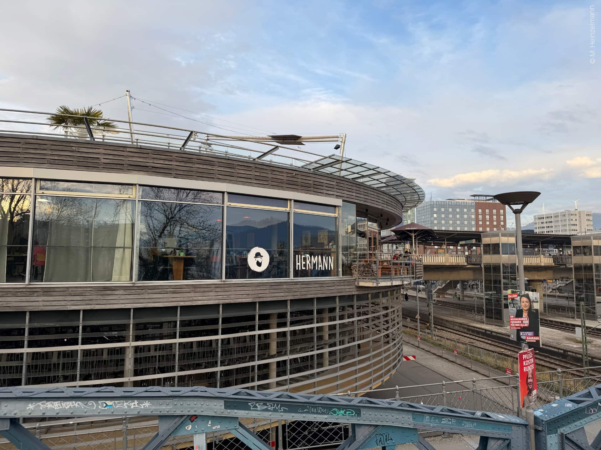 Das Café Hermann liegt direkt am Freiburger Hauptbahnhof im Gebäude der Radstation und vereint Café, Restaurant und Bar in urbaner Atmosphäre.